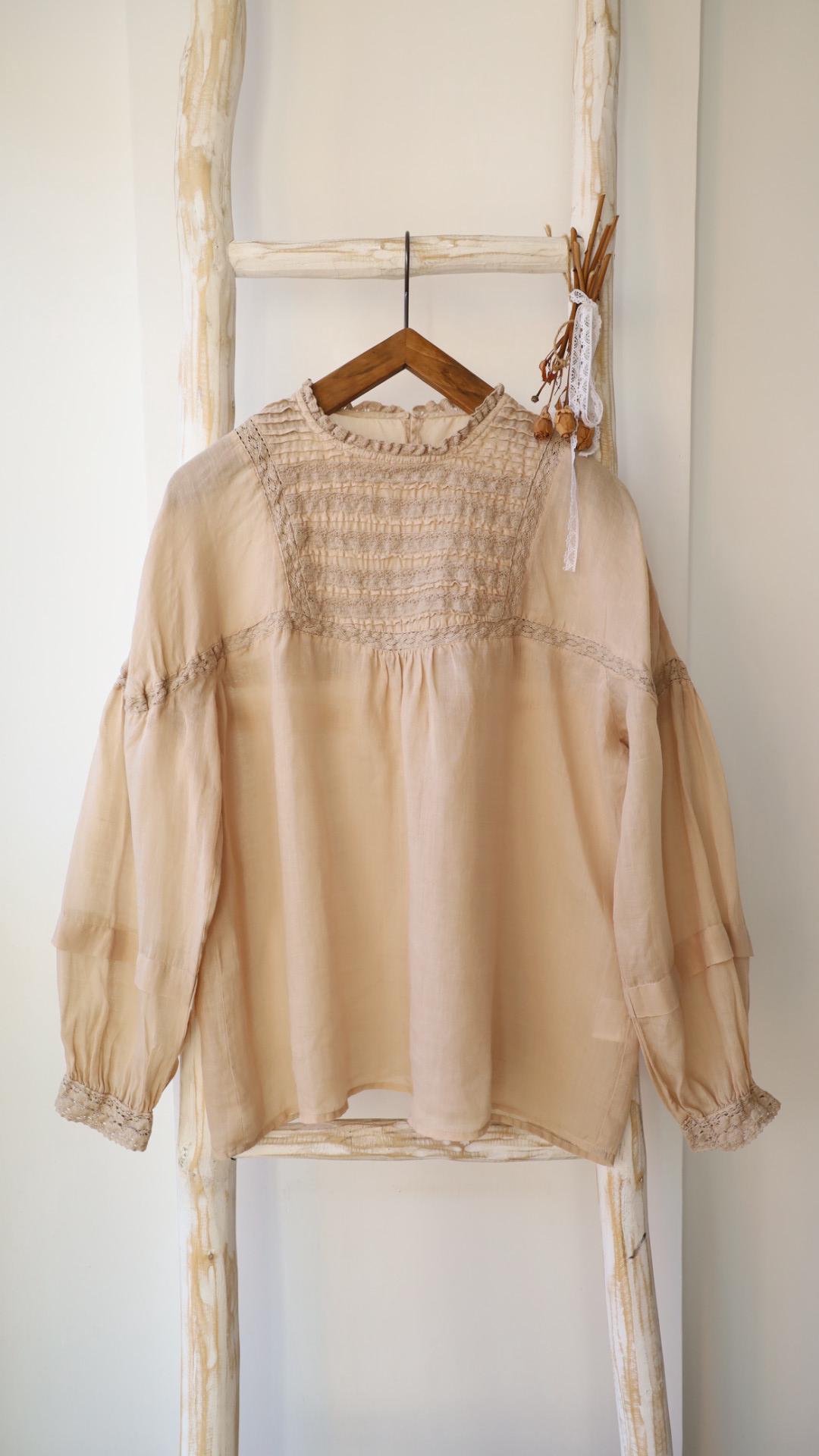 This romantic blouse features delicate lace detailing and a beautifully smocked bodice, creating a soft vintage-inspired silhouette. Made in a lightweight, breathable fabric, it drapes effortlessly for a relaxed and feminine look.